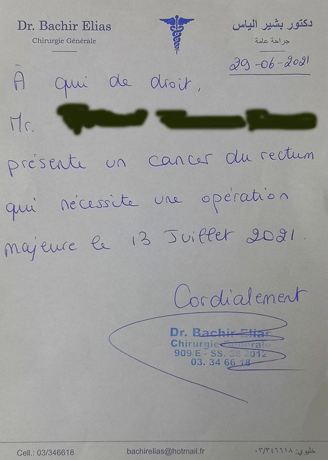 M A social and economical condition is very difficult as he needs urgent support (Kindly check the attestation from the Mokhtar of Amchit). We are dedicated to getting him 1000 USD as support from our website.